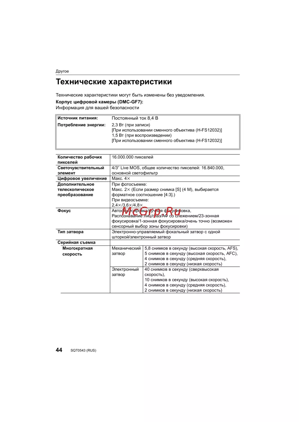 - Корпус цифровой камеры dmc gf7 информация для вашей безопасности p.44