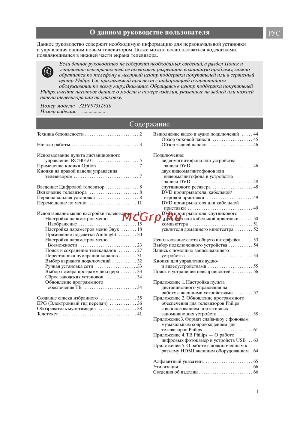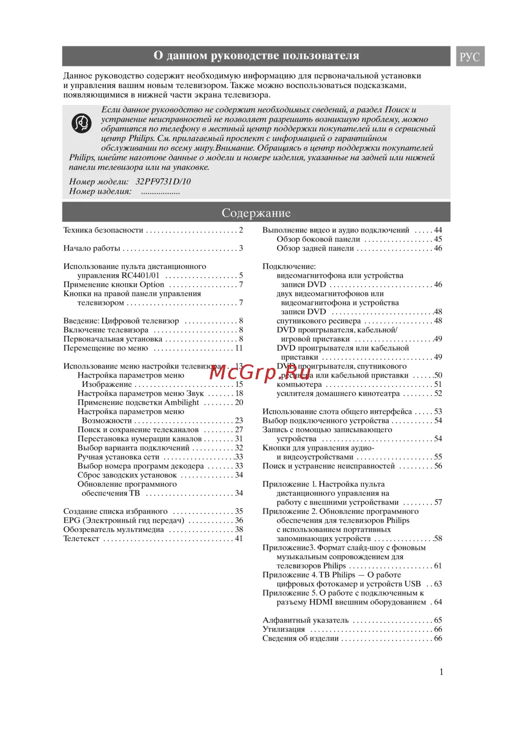 - Номер модели 32pf9731d 10 номер изделия p.1