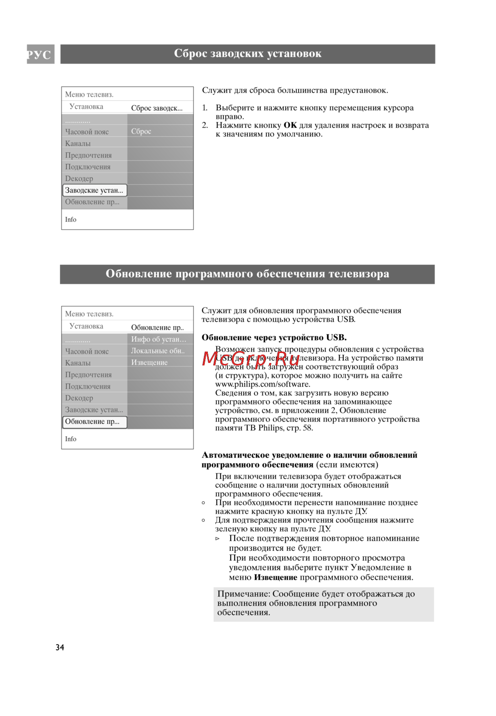 памяти ТВ Philips, стр. 58.