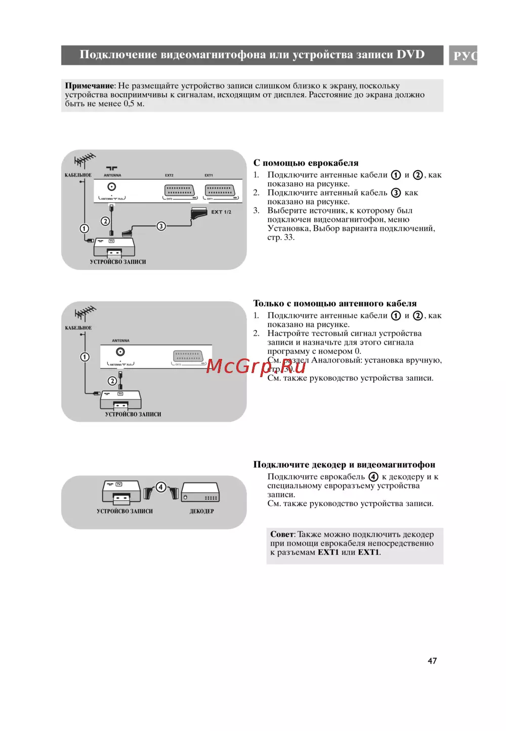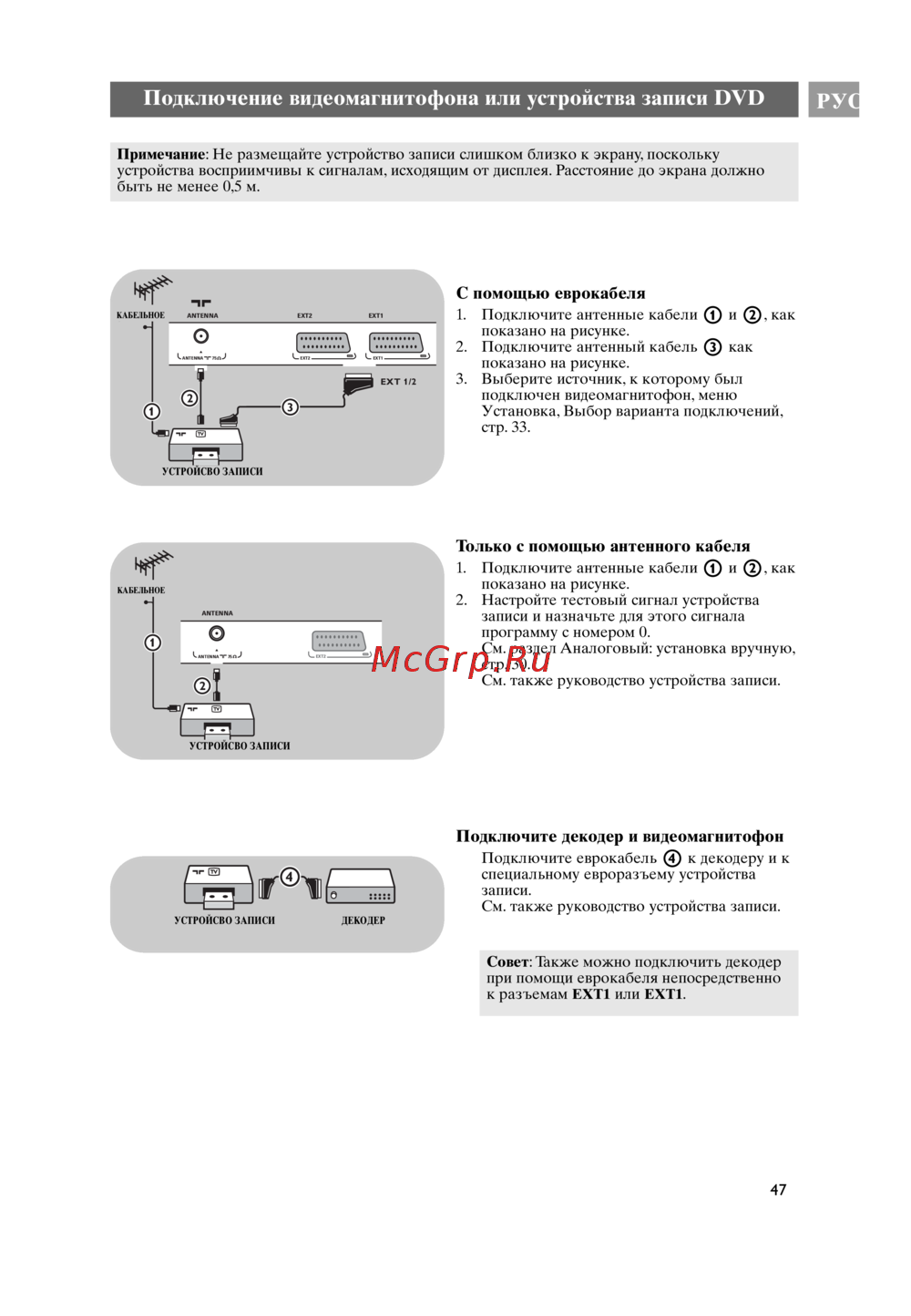 - Советы рекомендуется подключать устройства с выходным сигналом в системе rgb к разъемам ext1 или ext2 т к rgb обеспечивает лучшее качество изображения p.3