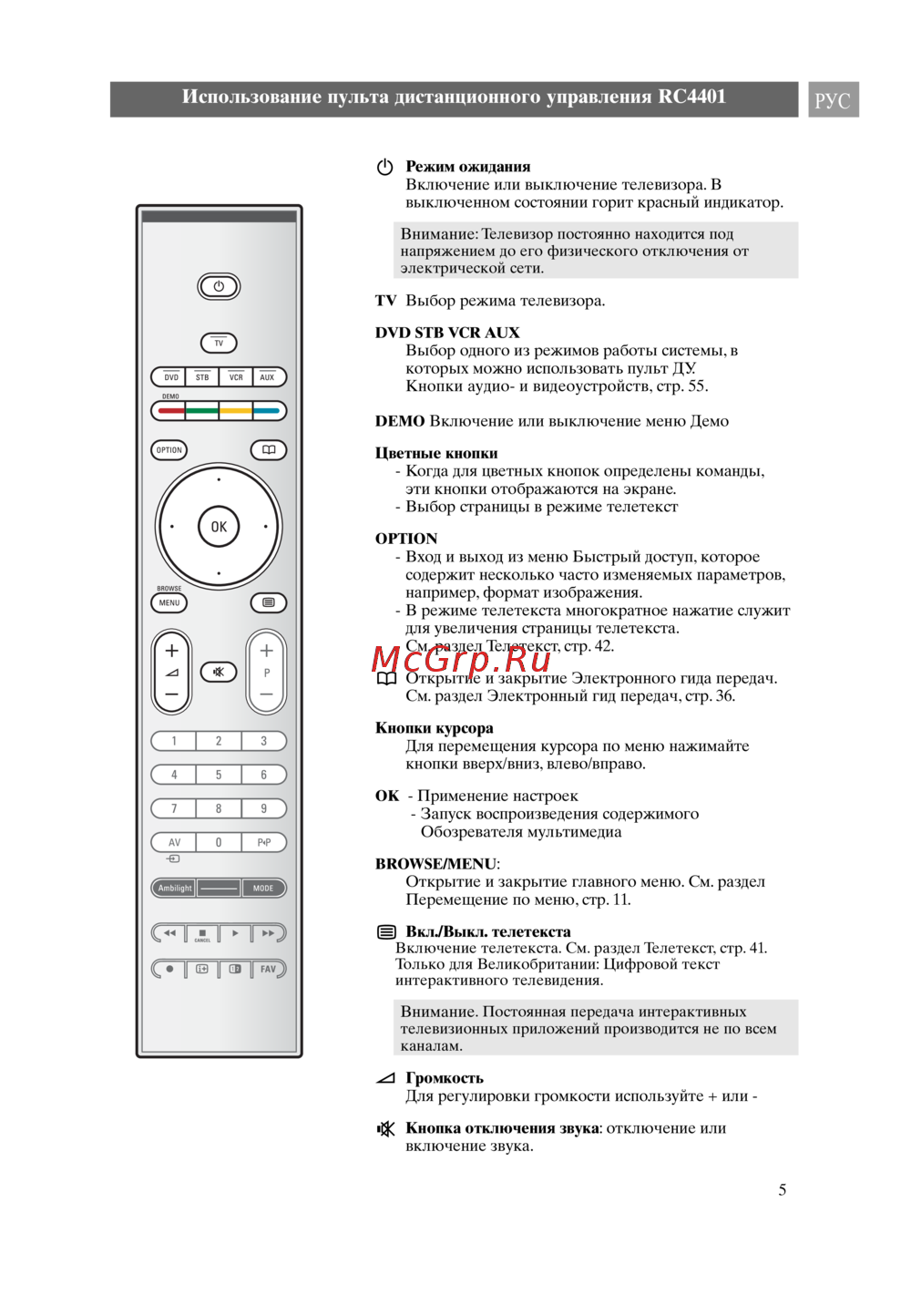 Philips 32 PF 9731D/10 — управление телевизором: режимы, функции и пульт дистанционного управления [5/87]