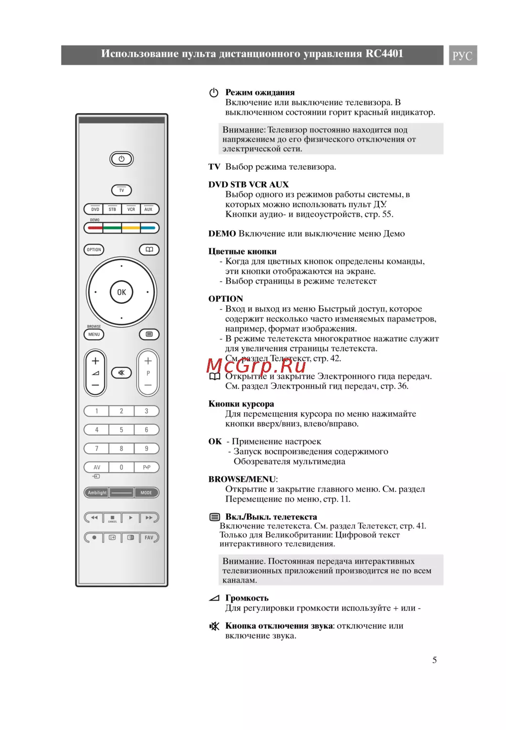- Использование пульта дистанционного управления rc4401 p.5