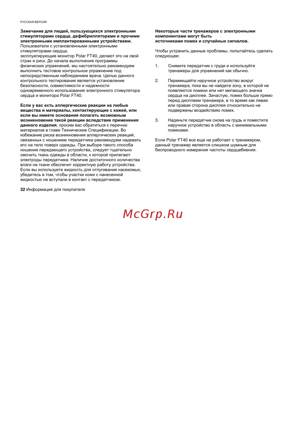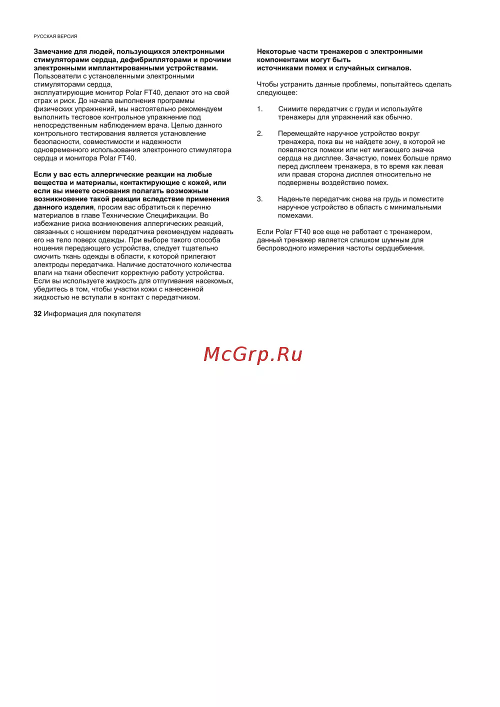 Polar FT40 — рекомендации по использованию электронных стимуляторов сердца [33/38]