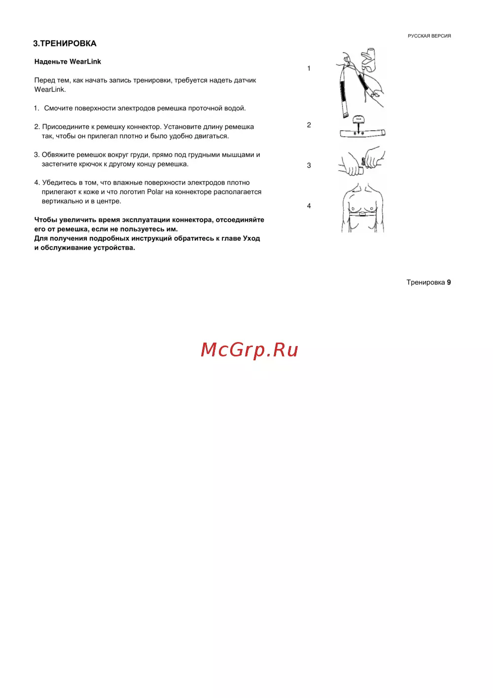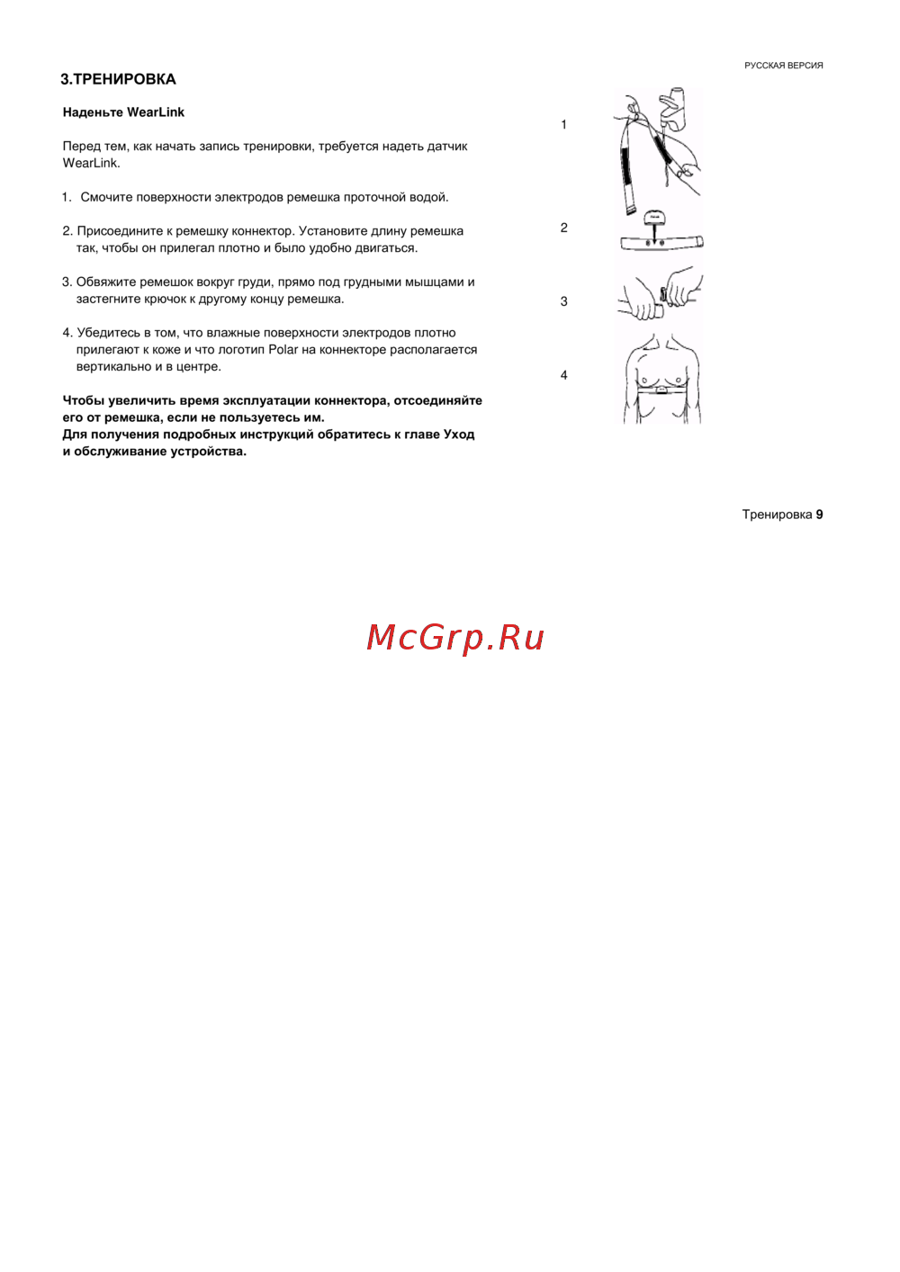 Перед тем, как начать запись тренировки, требуется надеть датчик