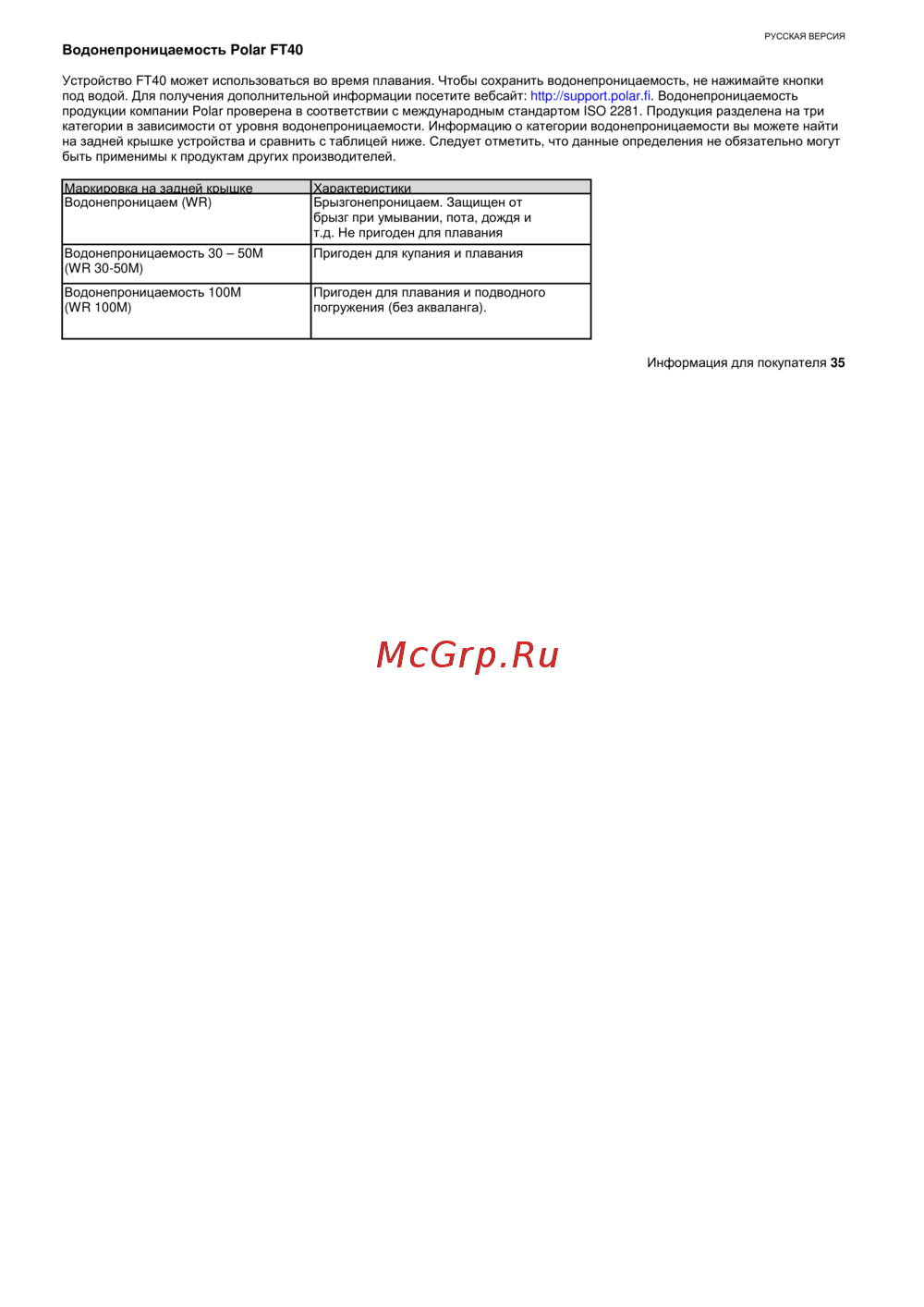 ![Polar FT60 [36/38] Водонепроницаемость polar ft40](/views2/1015574/page36/bg24.png)