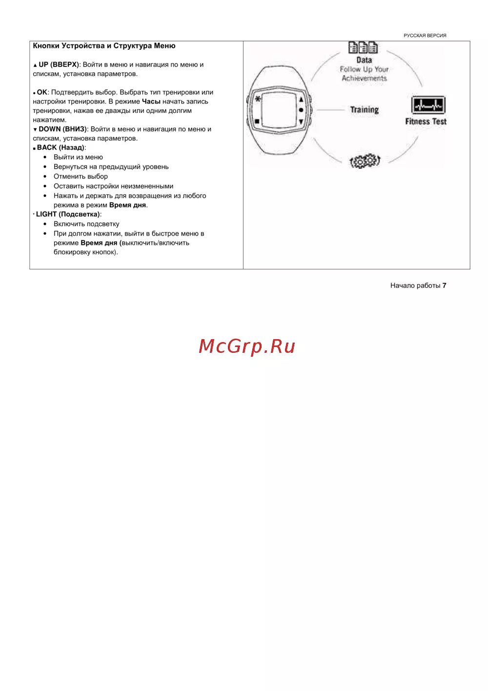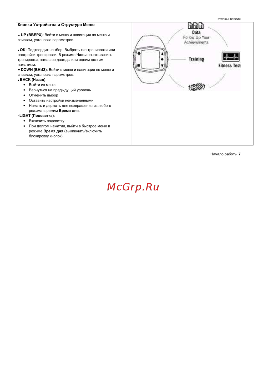 Polar FT60 — инструкция по использованию кнопок и меню устройства [8/38]