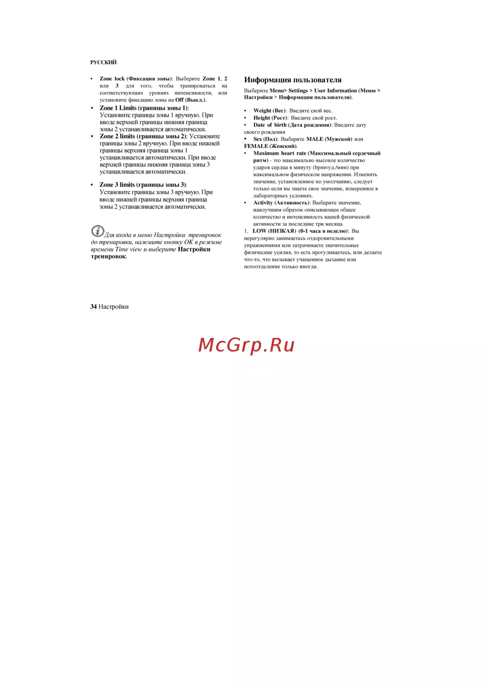 Polar FT80 — настройки тренировок: фиксация зон и информация пользователя [35/46]