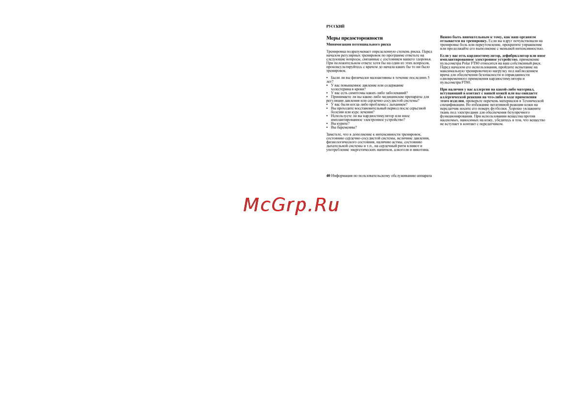 ![Polar FT80 [41/46] Меры предосторожности](/views2/1015590/page41/bg29.png)