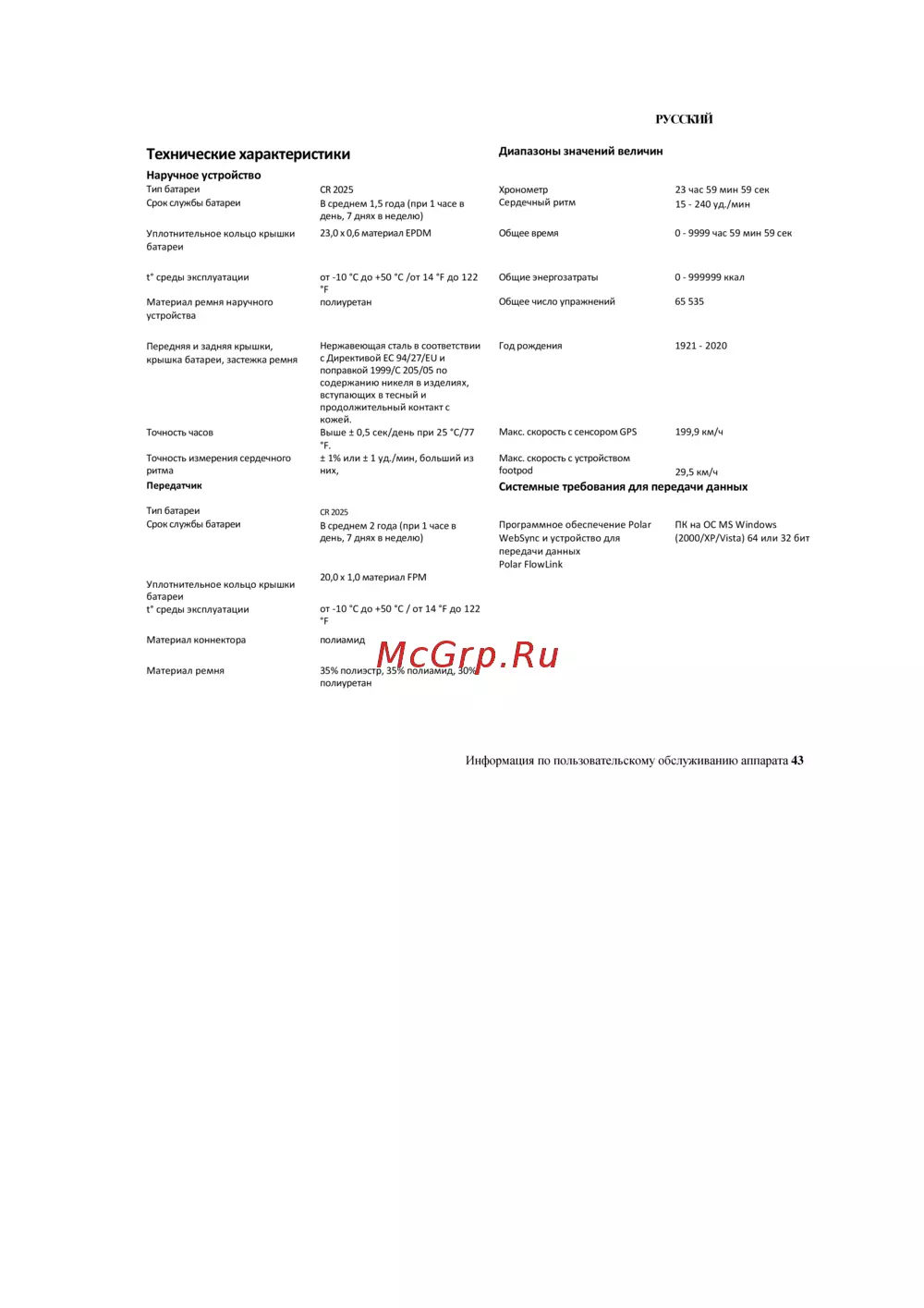 Polar FT80 — технические характеристики наручного устройства для фитнеса [44/46]
