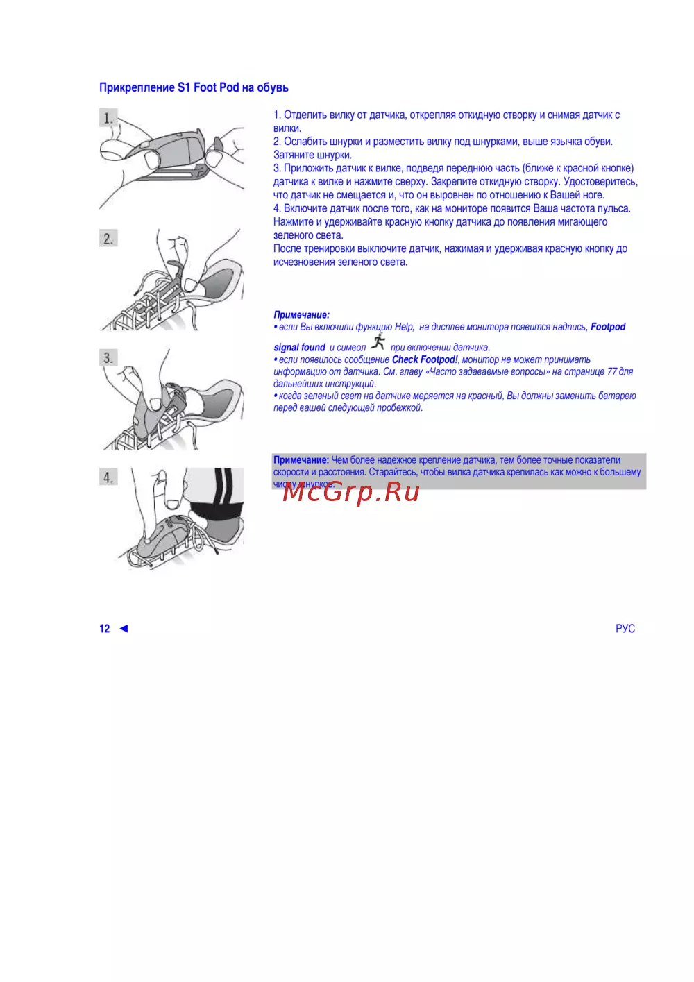 Polar RS300 — инструкция по креплению датчика на обувь для тренировок [12/83]