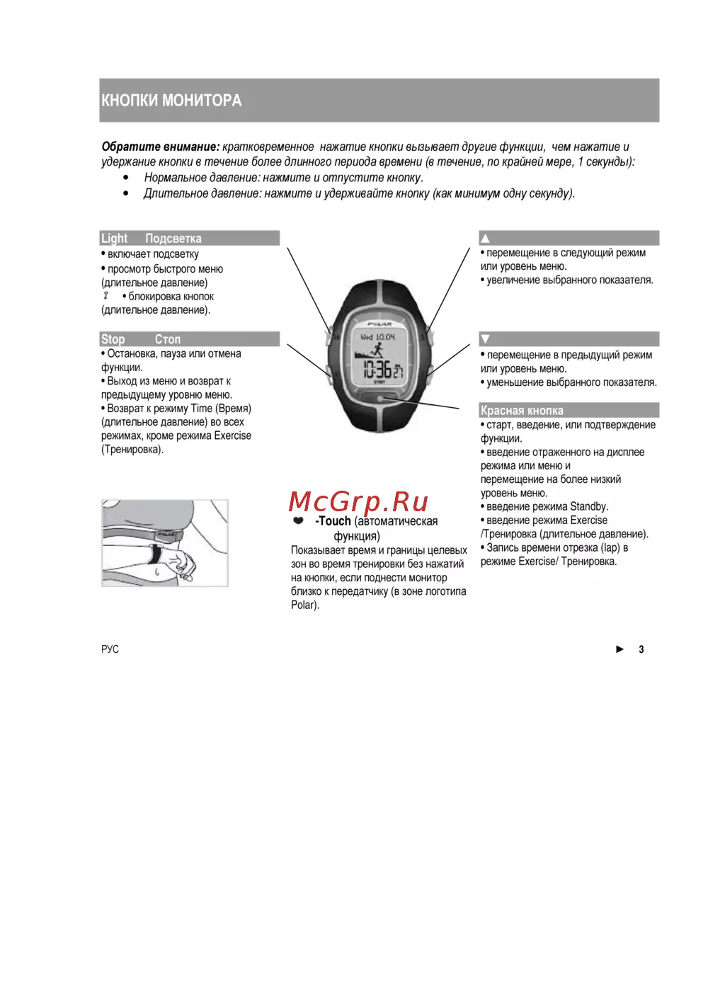 Polar RS300 — функции кнопок монитора: управление и настройки [3/83]