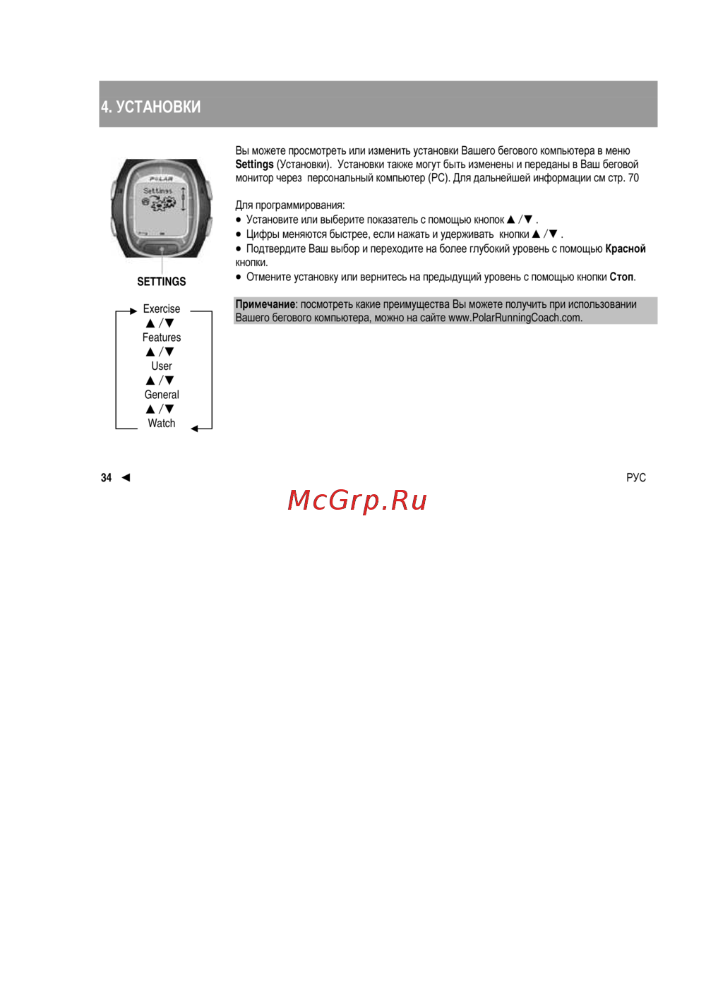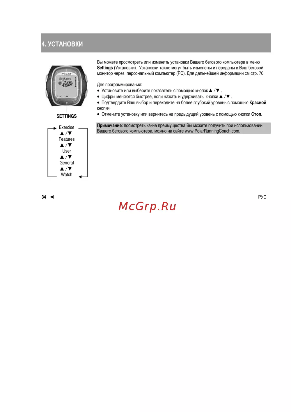 Polar RS300 — настройки бегового компьютера: управление и программирование [35/83]