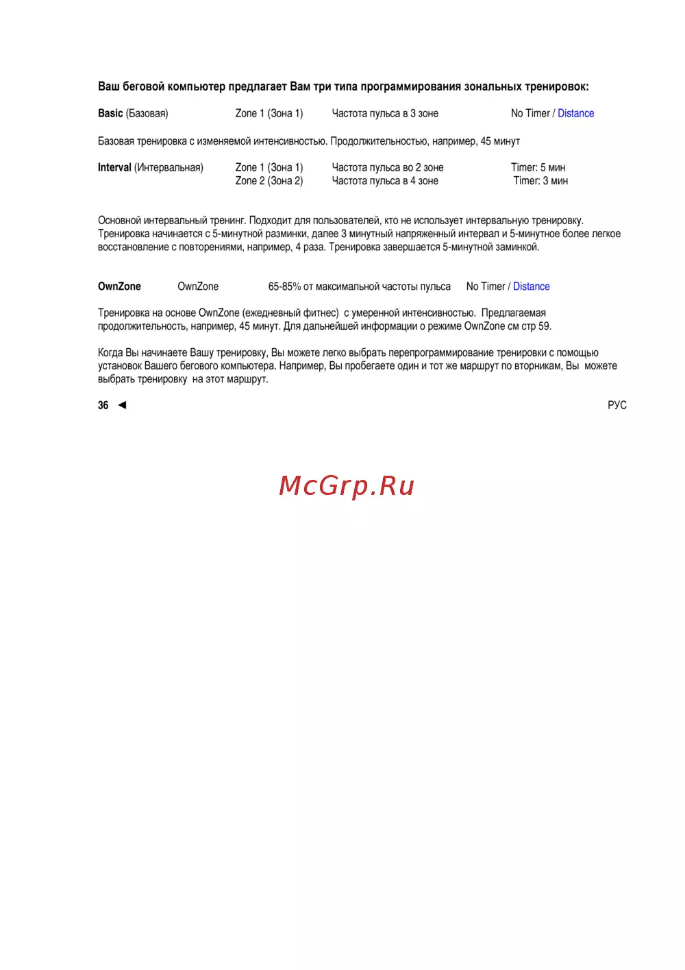 - Ваш беговой компьютер предлагает вам три типа программирования зональных тренировок p.37