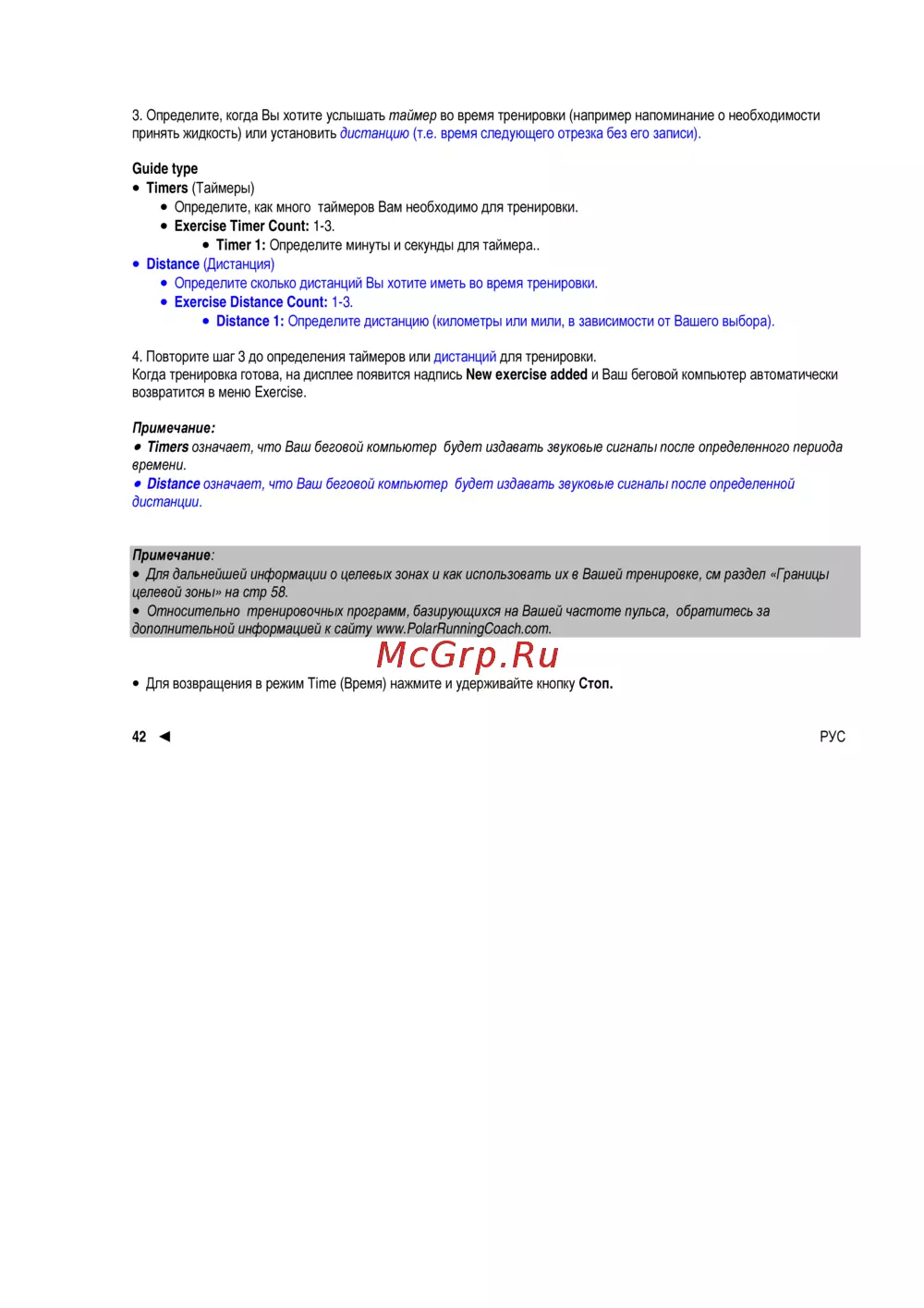 Distance означает, что Ваш беговой компьютер будет издавать звуковые сигналы после определенной