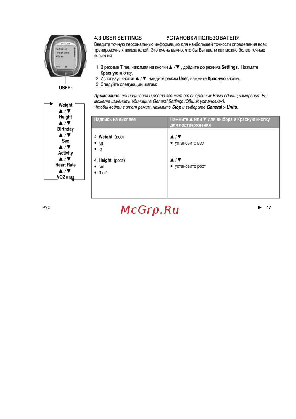 Polar RS300 — настройки пользователя для точного определения тренировочных показателей [48/83]