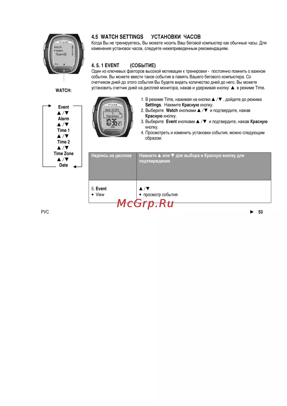 Polar RS300 — настройка бегового компьютера: установка событий и времени [54/83]