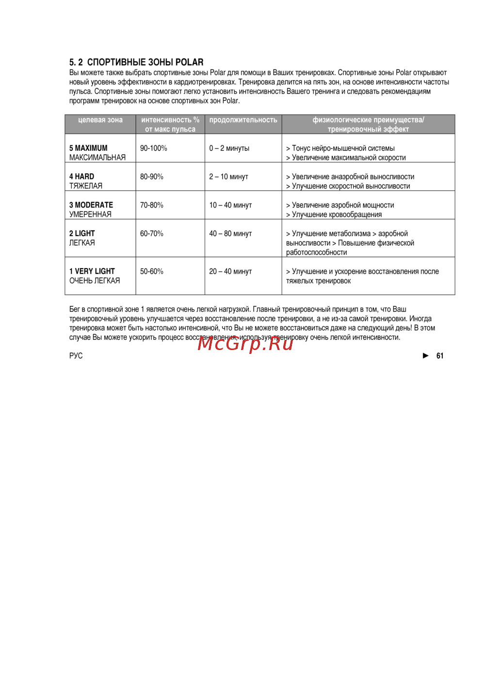 5. 2 СПОРТИВНЫЕ ЗОНЫ POLAR
