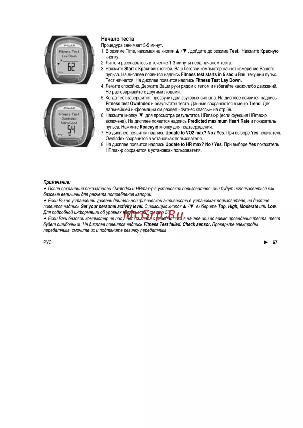 Polar RS300 — инструкция по проведению фитнес-теста за 5 минут [68/83]