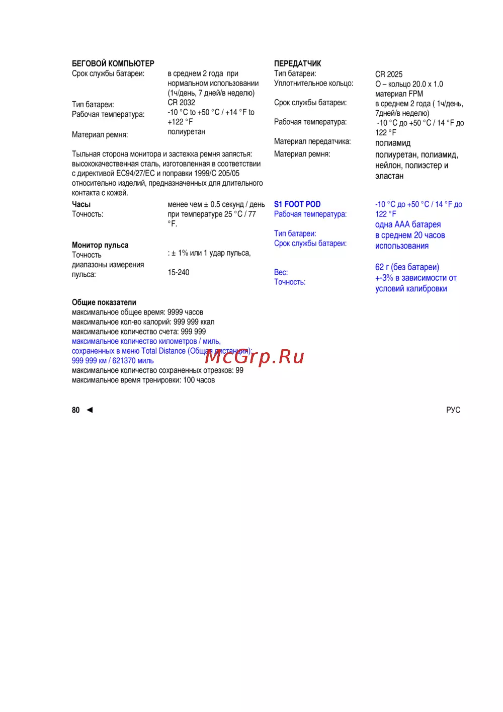 - Одна ааа батарея в среднем 20 часов использования 62 г без батареи 3 в зависимости от условий калибровки p.81