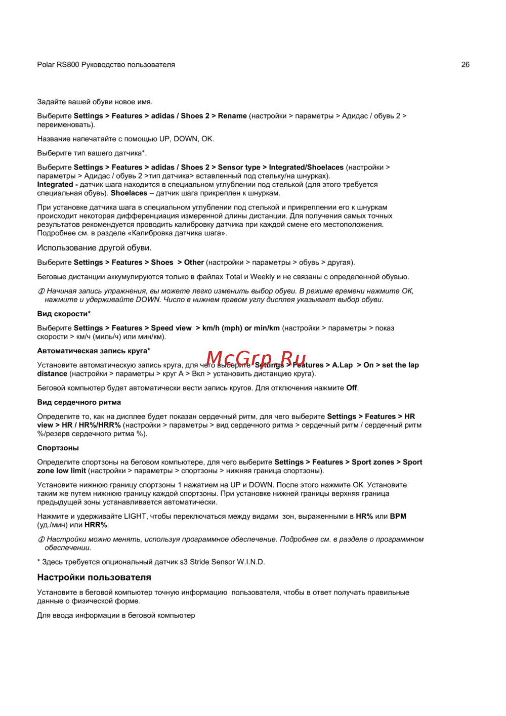 Polar RS800CX — руководство пользователя для настройки бегового компьютера [26/53]