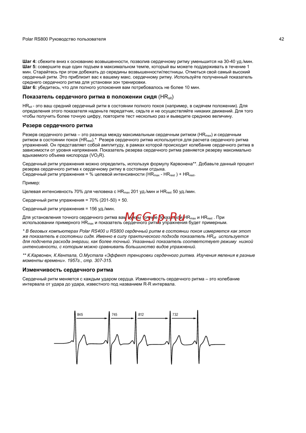 * В беговых компьютерах Polar RS400 и RS800 сердечный ритм в состоянии покоя измеряется как этот