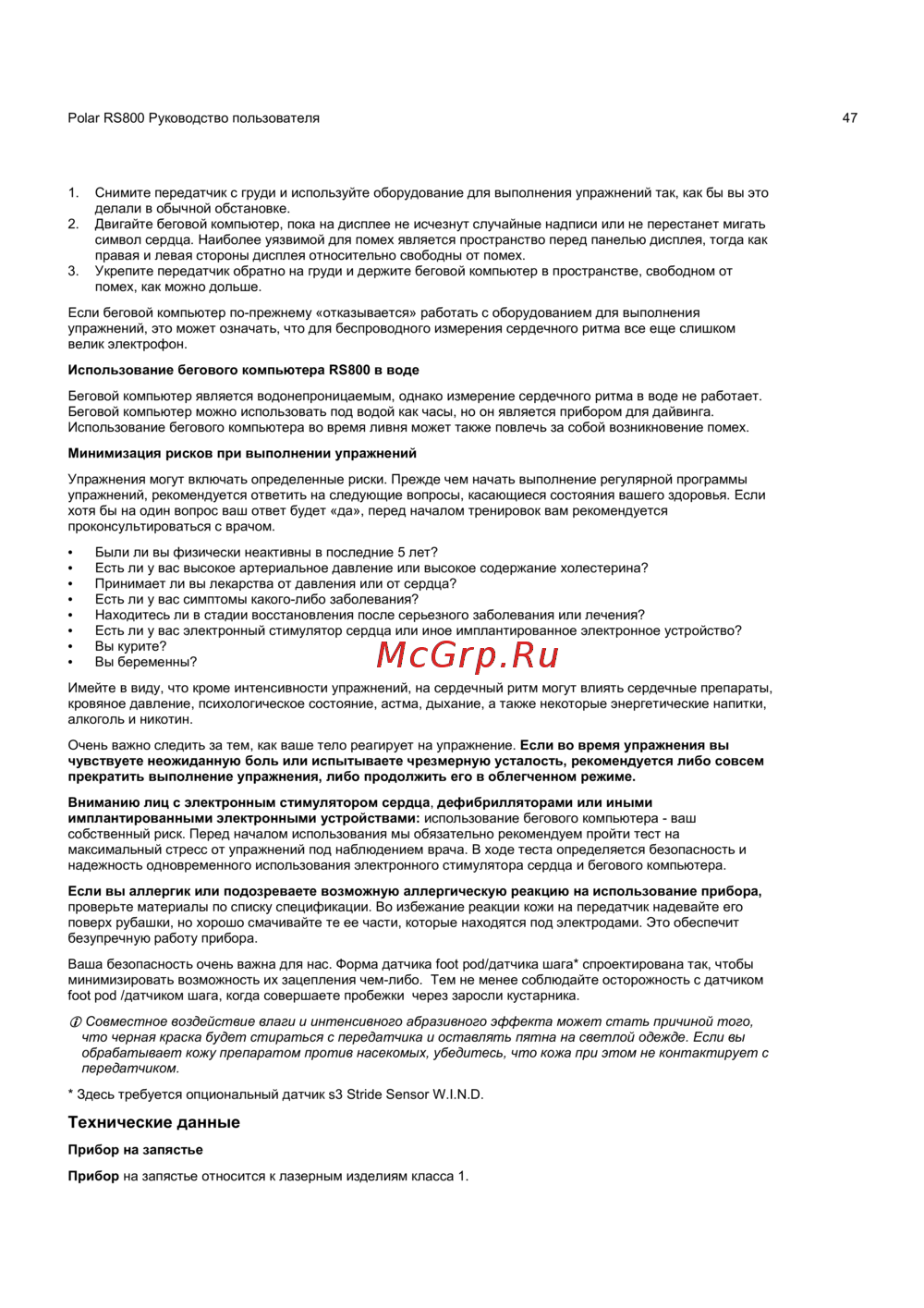 Polar RS800CX — руководство пользователя для бегового компьютера и безопасности тренировок [47/53]