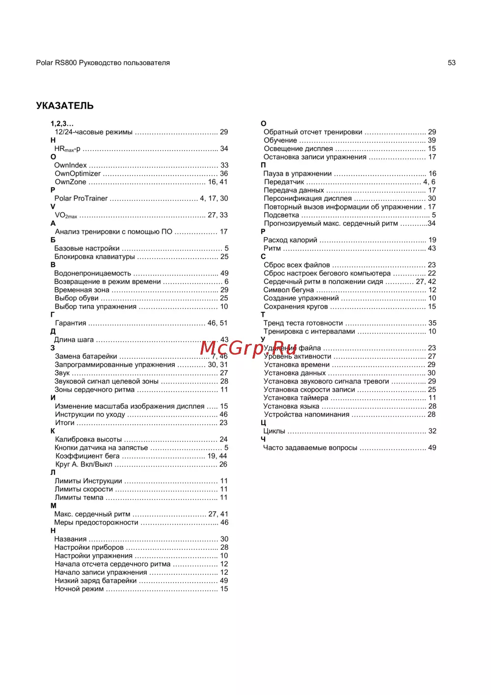 Polar RS800CX — руководство пользователя для спортивного устройства: все функции [53/53]