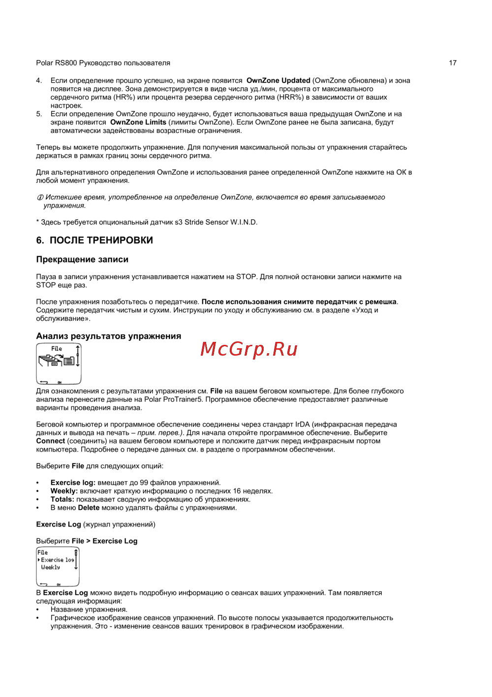 Для ознакомления с результатами упражнения см. File на вашем беговом компьютере. Для более глубокого