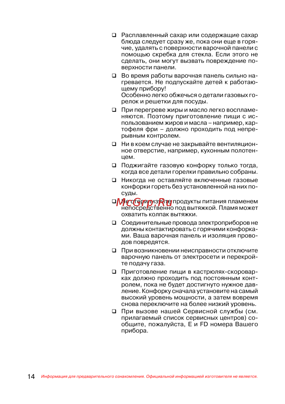 - Уход за вашей варочной панелью p.16