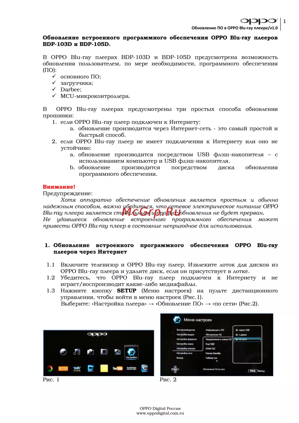 Oppo BDP-105DИнструкция по обновлению ПО плееров OPPO -