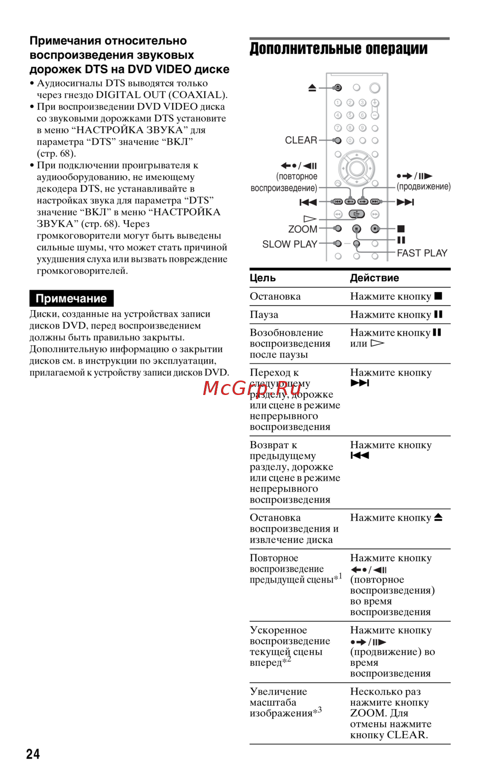 Sony DVP-NS30/S — рекомендации по воспроизведению звуковых дорожек DTS на DVD [24/80]