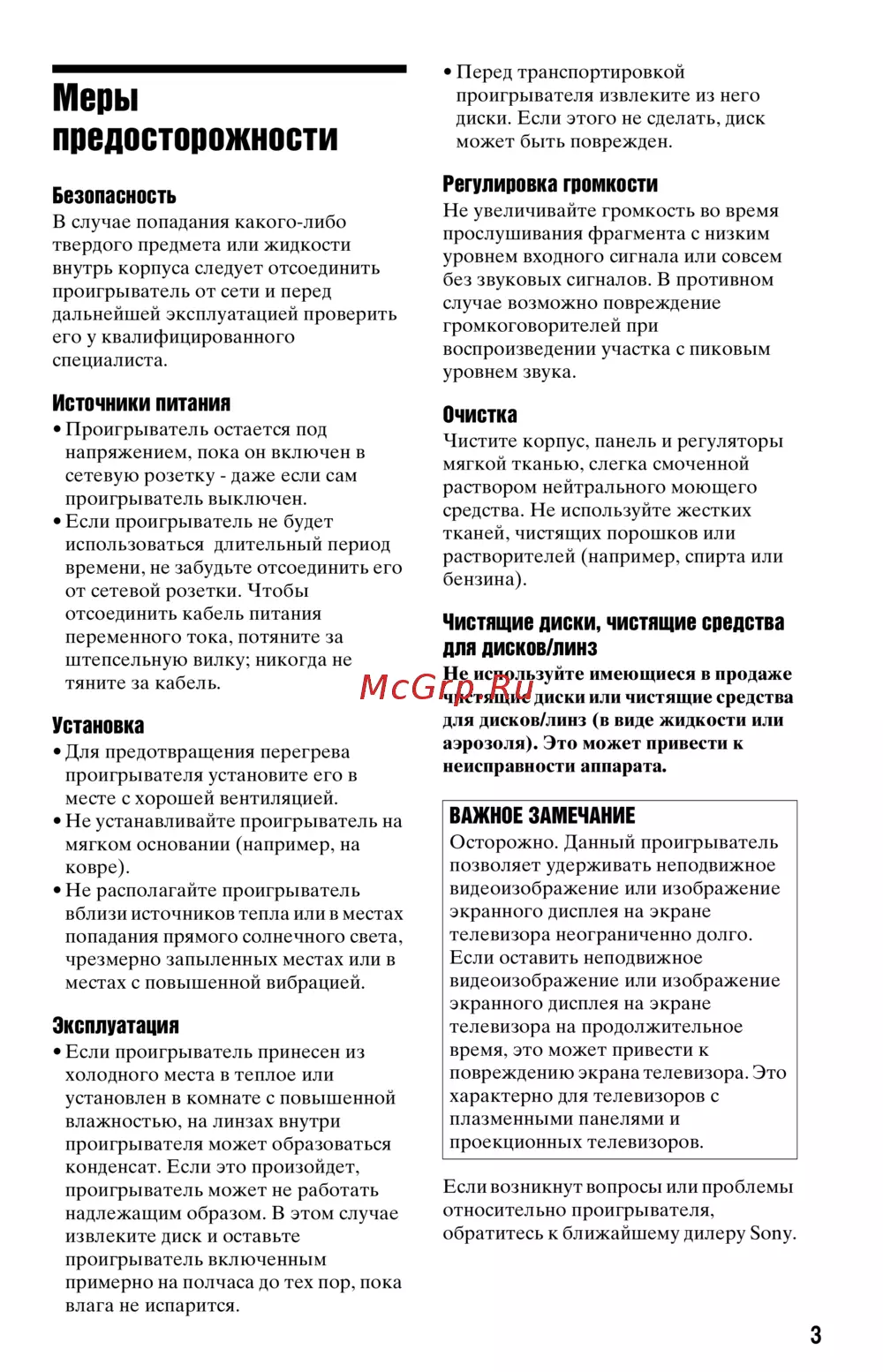 Sony DVP-NS30/S — меры предосторожности и советы по эксплуатации проигрывателя [3/80]