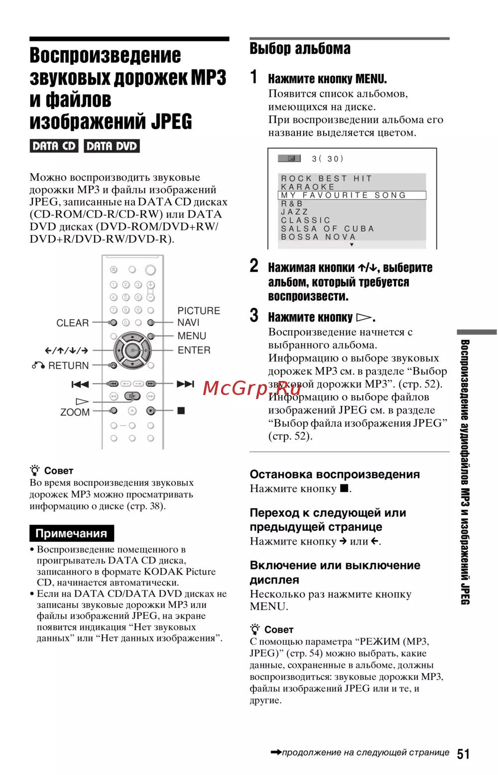 Sony DVP-NS30/S [51/80] Воспроизведение звуковых дорожек mp3 и файлов изображений jpeg