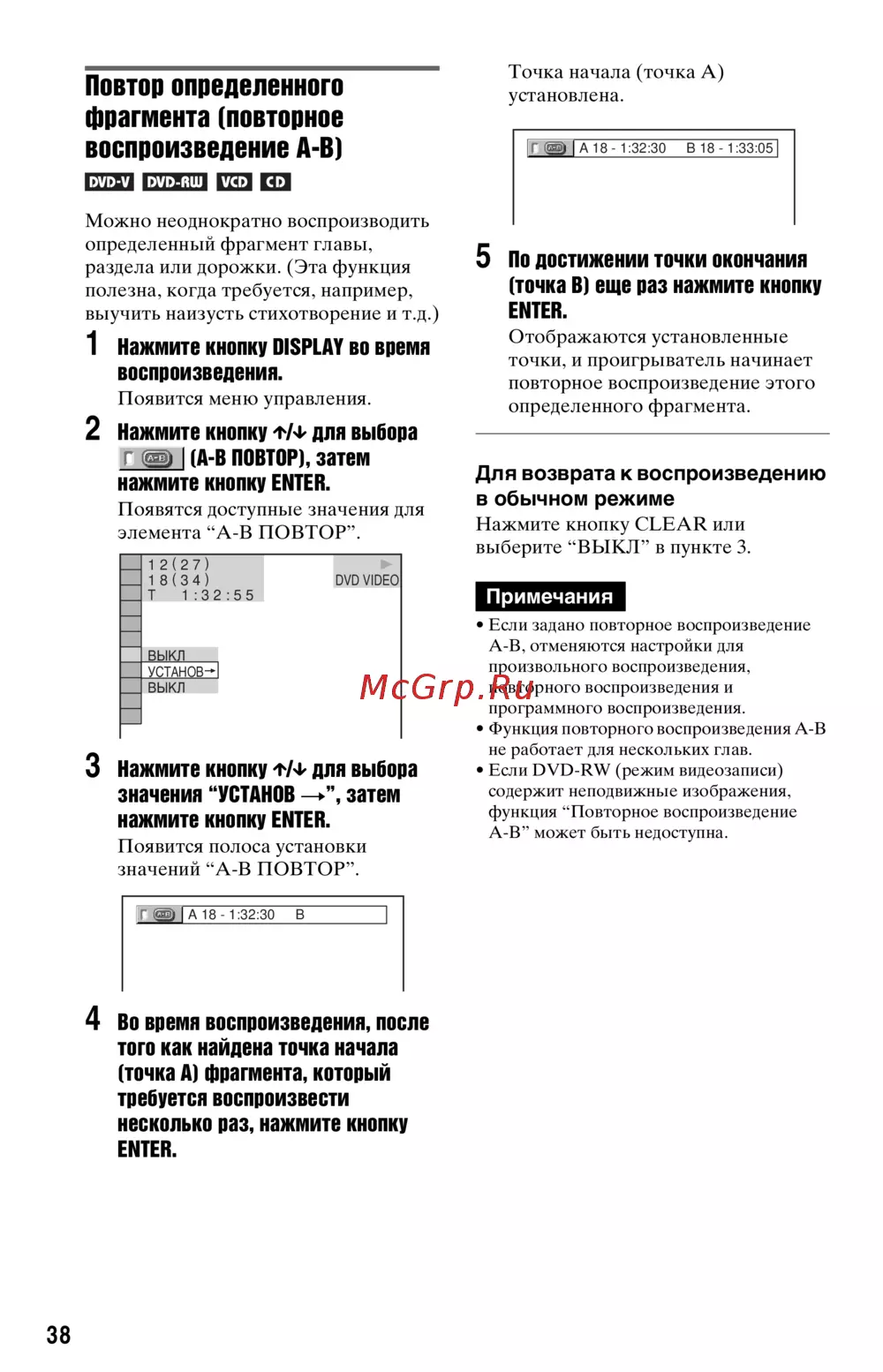 Sony DVP-NS32/S [38/94] Повтор определенного фрагмента повторное воспроизведение a b