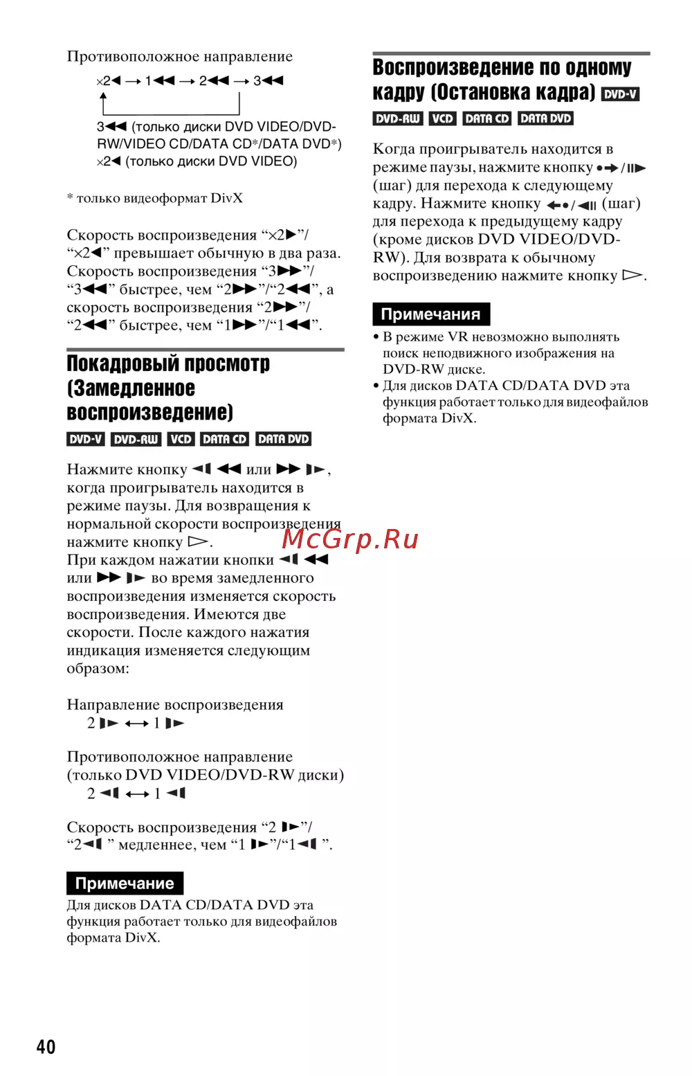 - Не удается выполнить некоторые функции такие как остановка поиск быстрое и медленное воспроизведение замедленное повторное произвольное или программное воспроизведение p.84