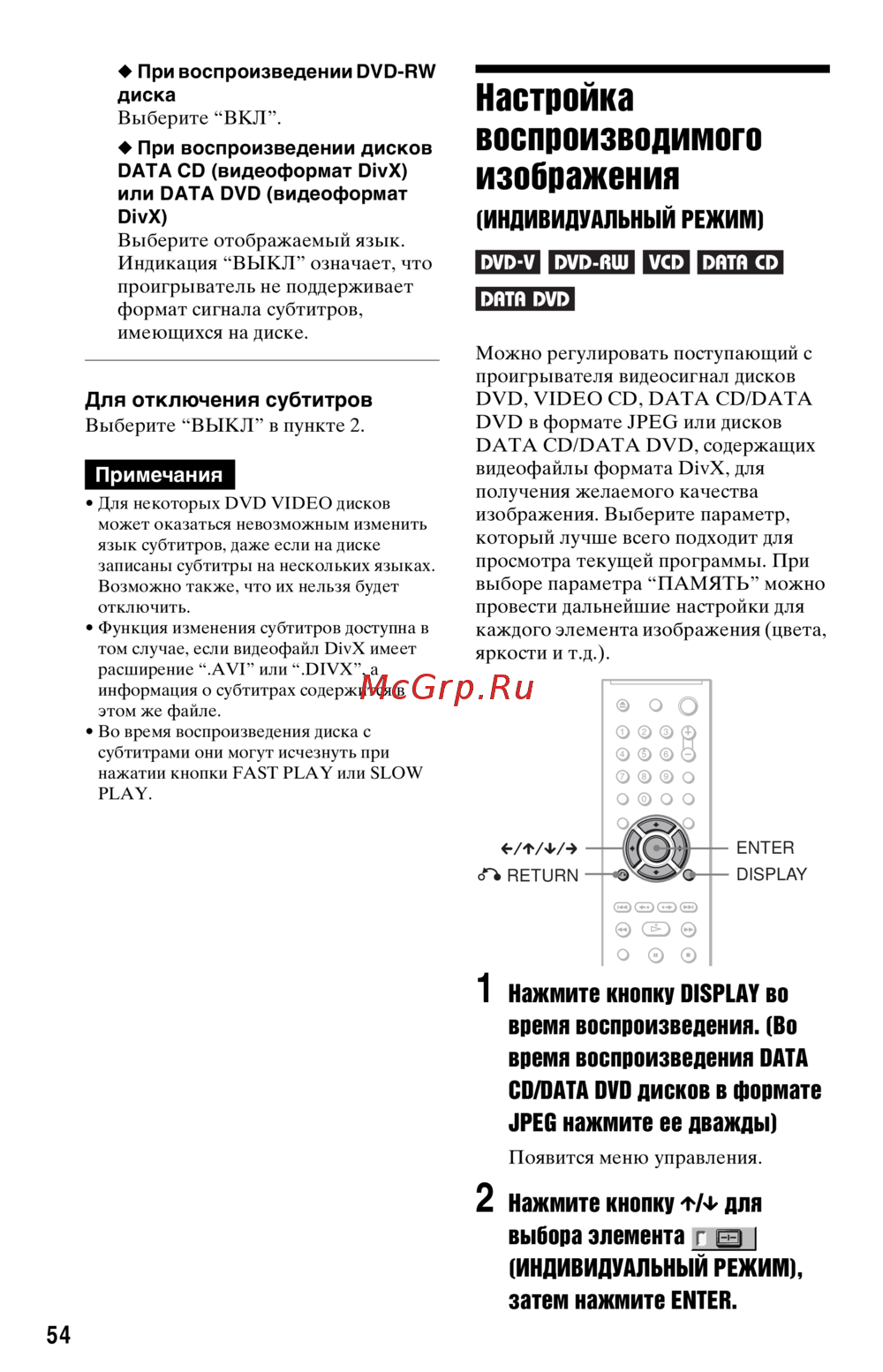 ![Sony DVP-NS32/S [54/94] Индивидуальный режим](/views2/1034303/page54/bg36.png)