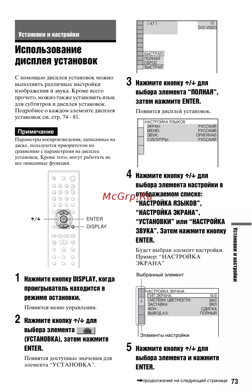 ![Sony DVP-NS32/S [73/94] Использование дисплея установок](/views2/1034303/page73/bg49.png)