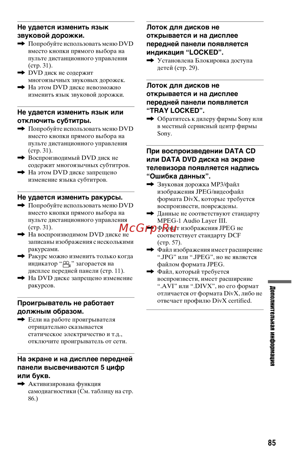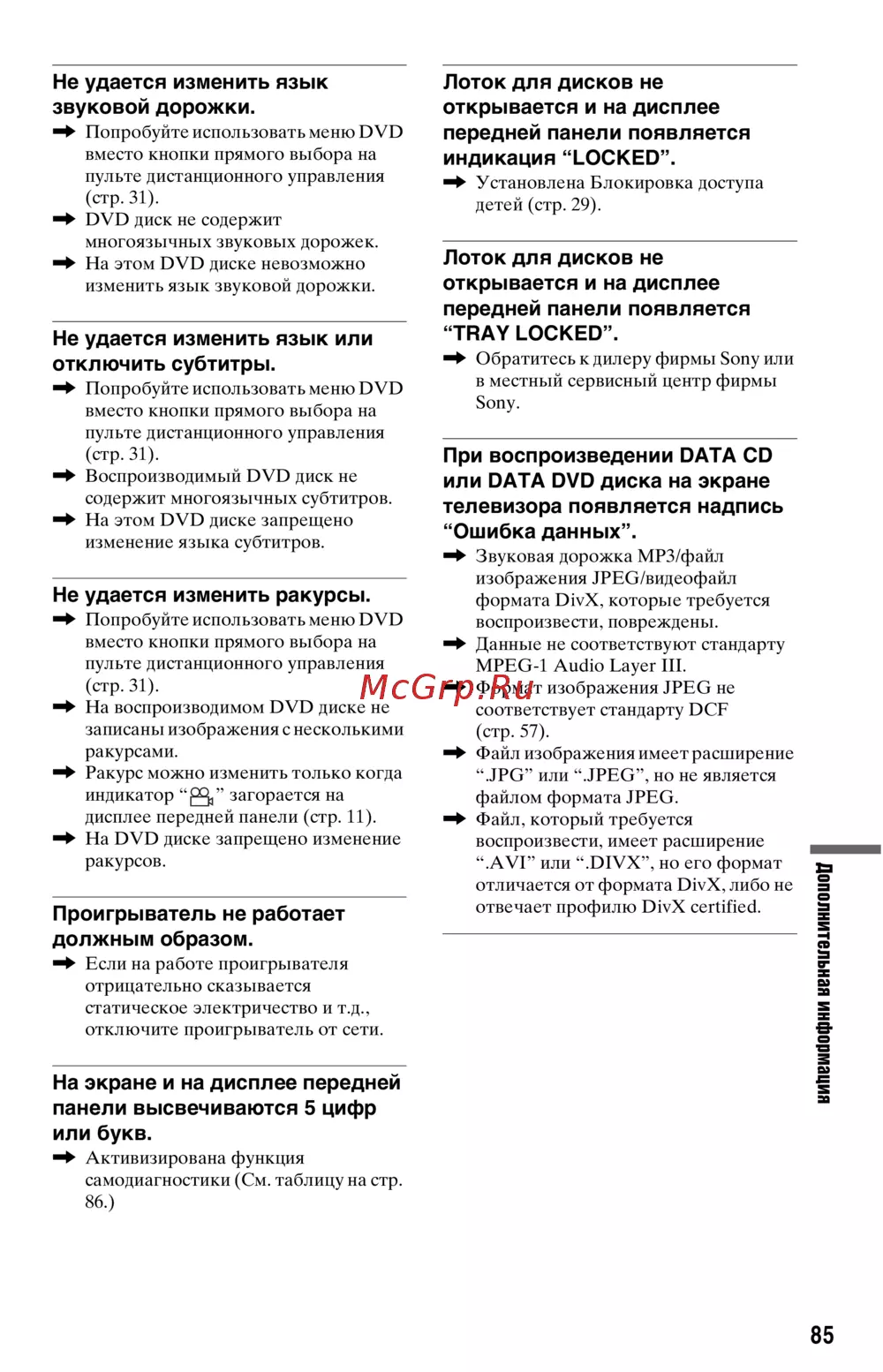 - Не воспроизводится диск p.83