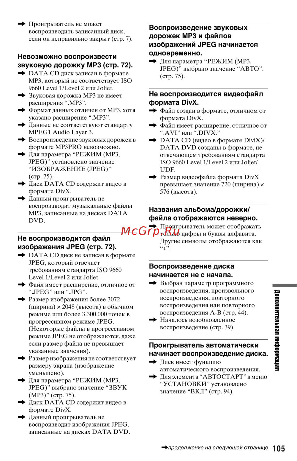 - Невозможно воспроизвести звуковую дорожку mp3 стр 72 p.105