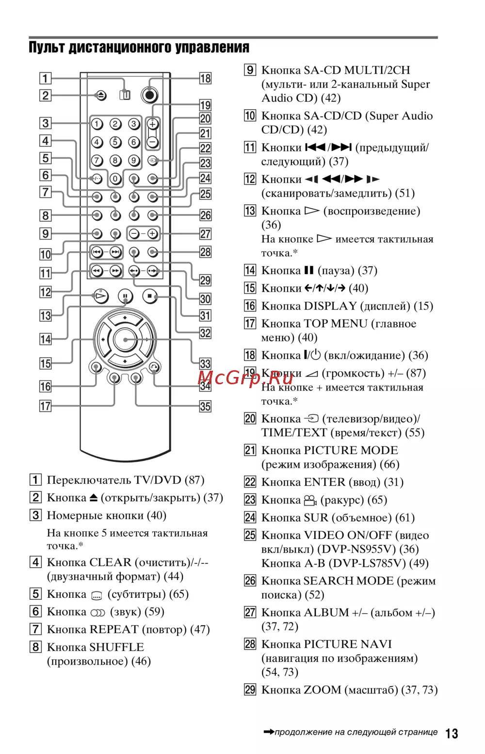 ![Sony DVP-NS955V/S [13/116] Пульт дистанционного управления](/views2/1033938/page13/bgd.png)