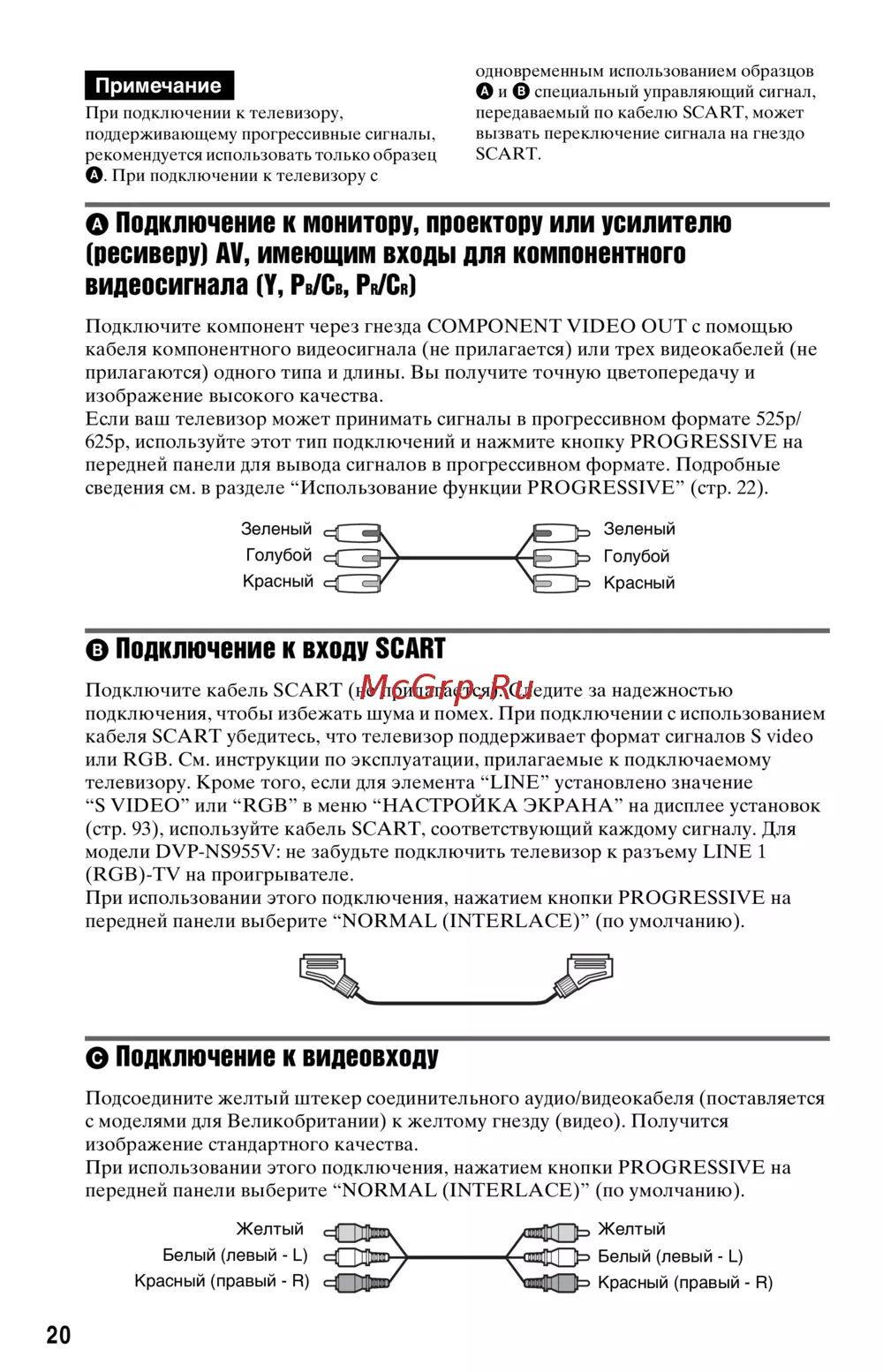 (стр. 93), используйте кабель SCART, соответствующий каждому сигналу. Для