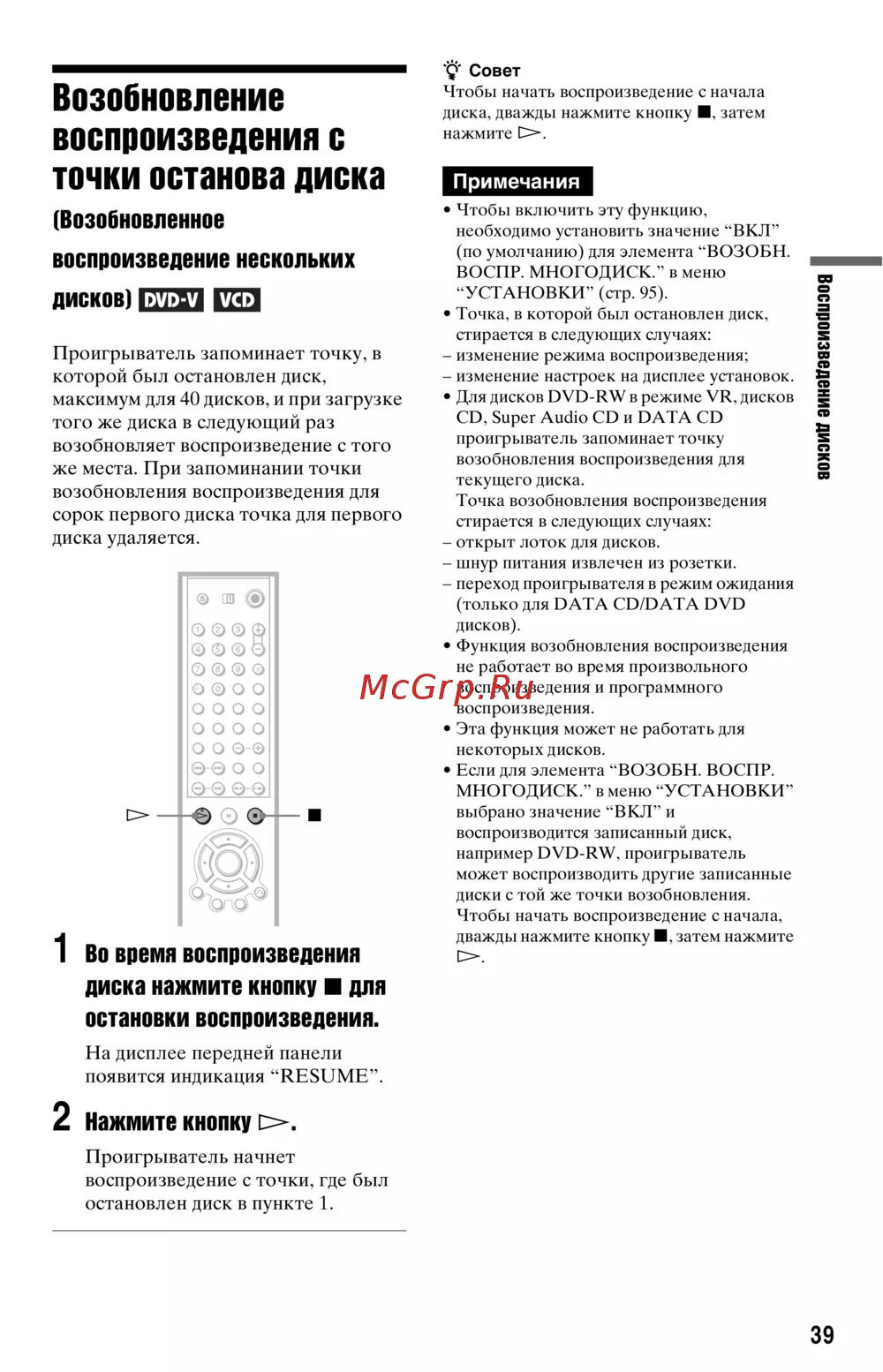 - На данном проигрывателе можно воспроизводить следующие диски p.7
