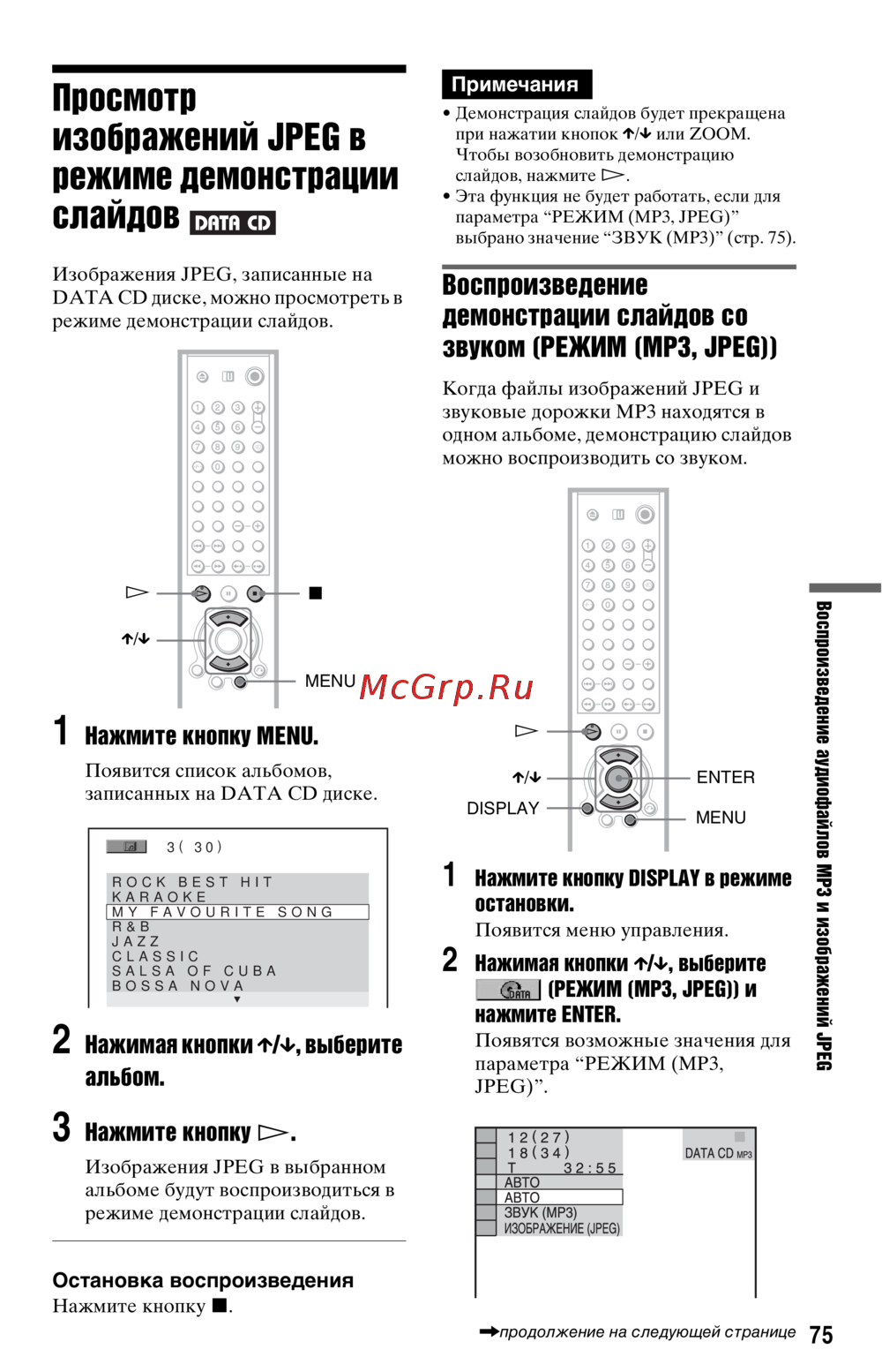 Sony DVP-NS955V/S [75/116] Просмотр изображений jpeg в режиме демонстрации слайдов