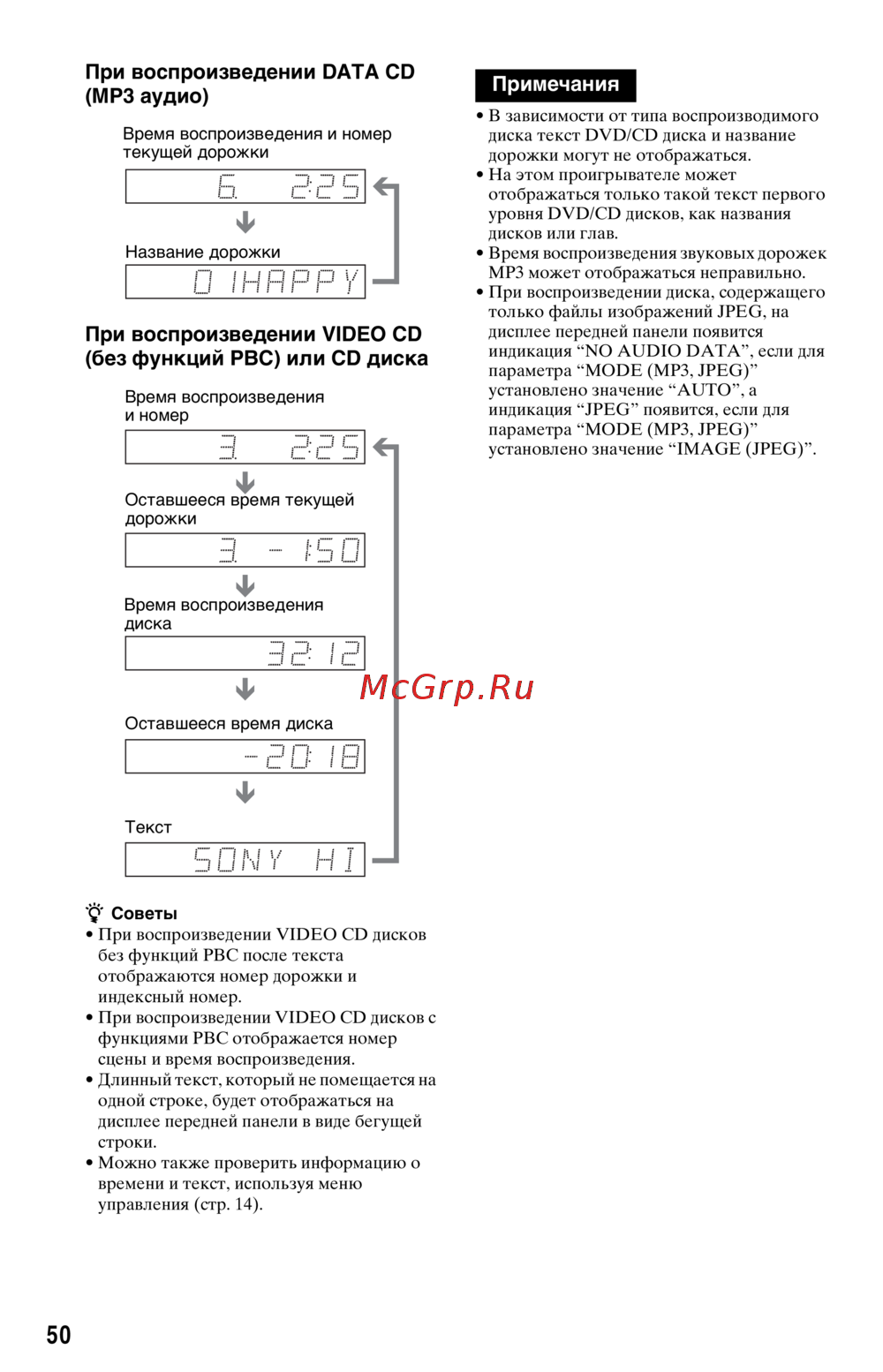 Sony DVP-NS585P/S — советы по воспроизведению CD и DVD дисков с аудио и видео [50/96]