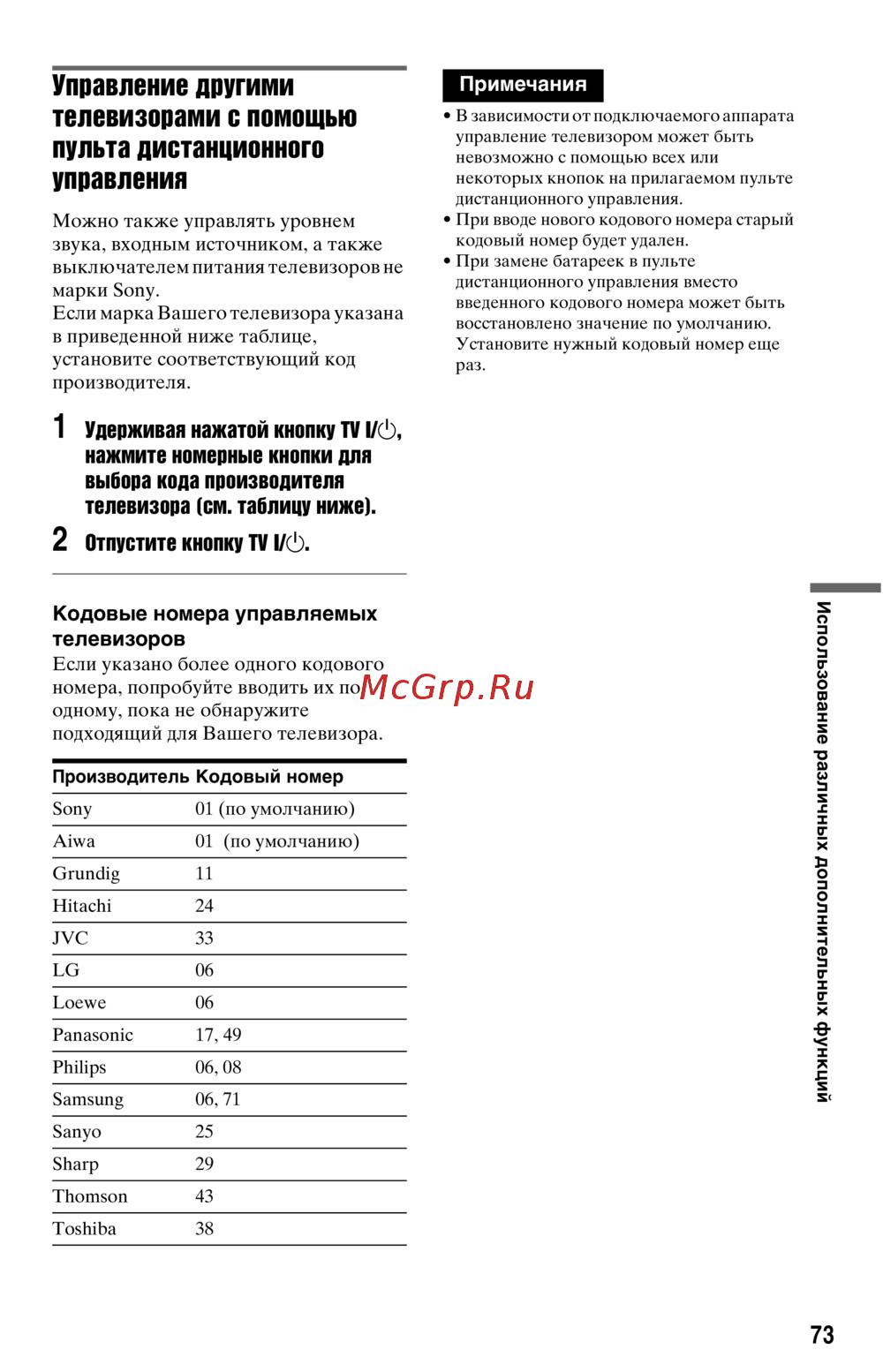 Sony DVP-NS585P/S — управление телевизорами с помощью универсального пульта [73/96]