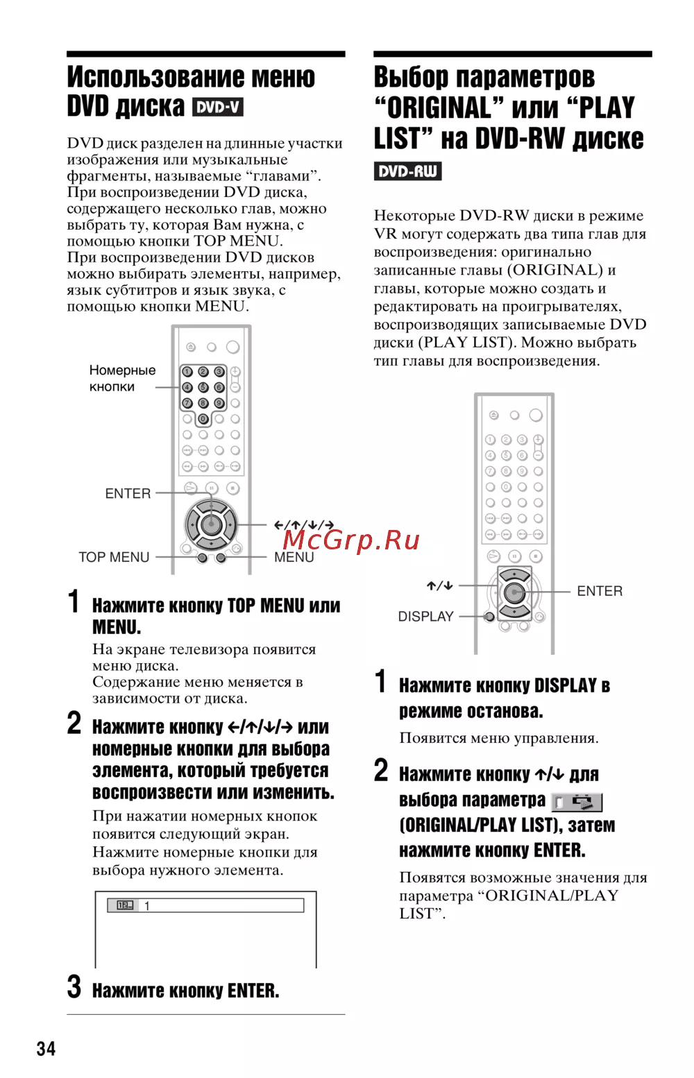 1 Нажмите кнопку TOP MENU или