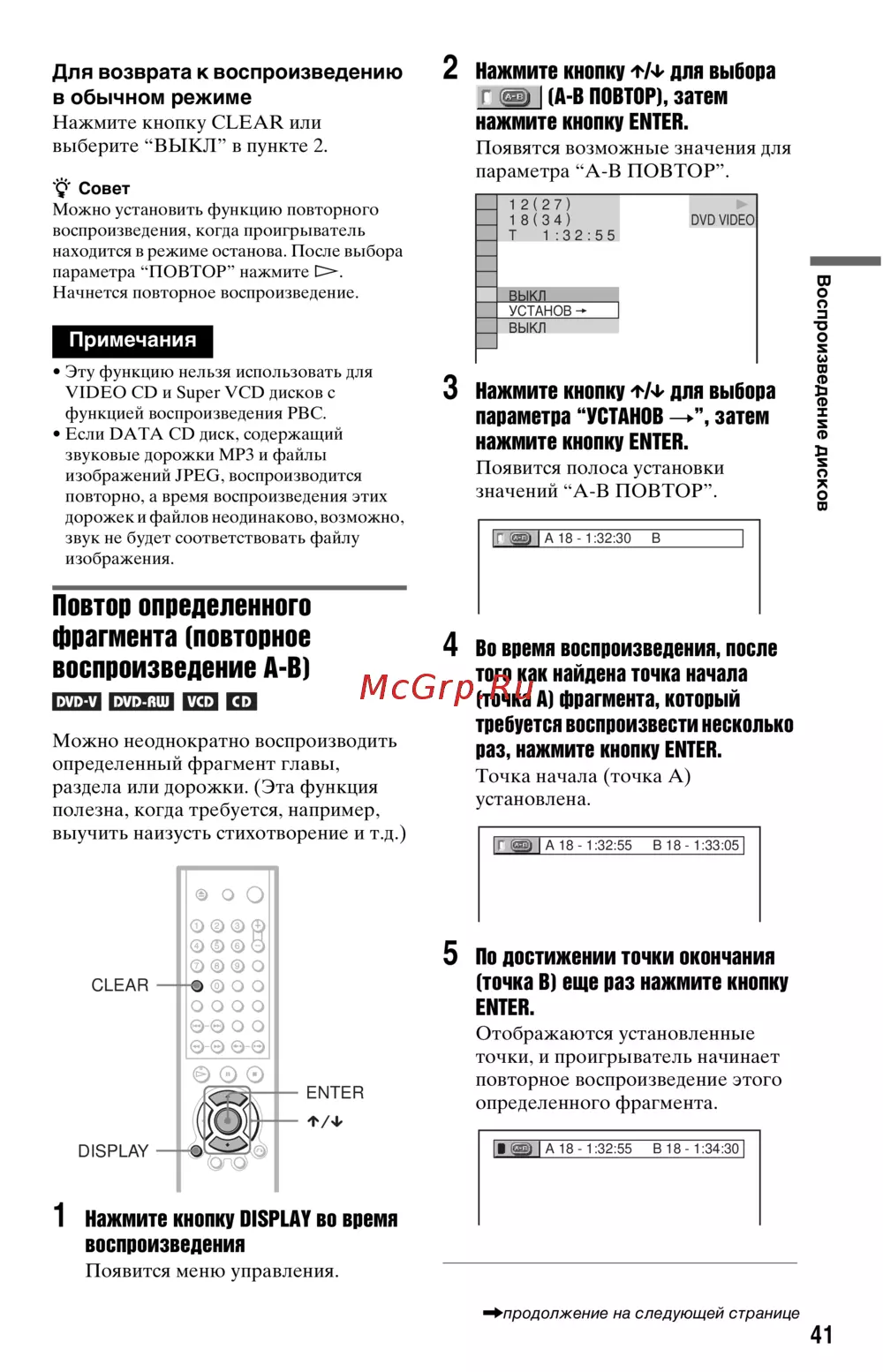 Sony DVP-NS355/S [41/96] Повтор определенного фрагмента повторное воспроизведение a b