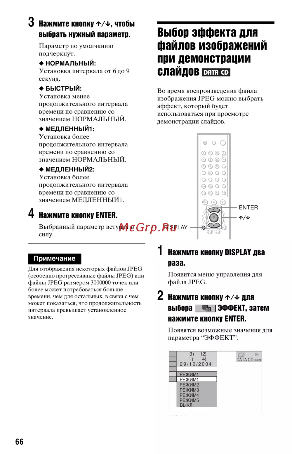 - Воспроизведение звуковых дорожек mp3 и файлов изображений jpeg начинается одновременно p.86
