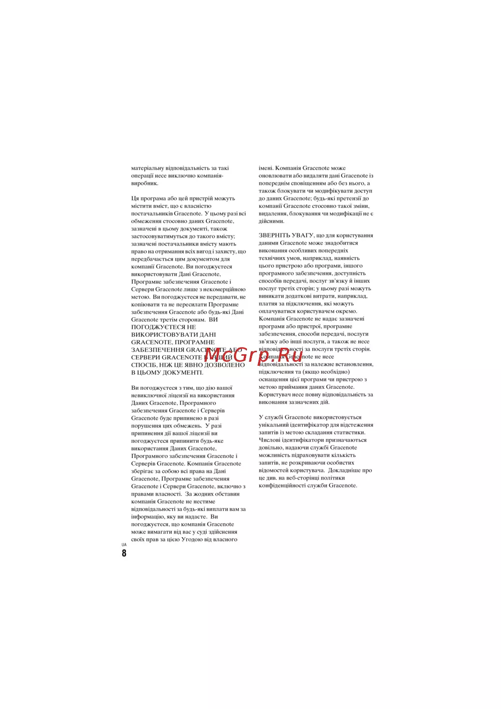 ЗАБЕЗПЕЧЕННЯ GRACENOTE АБО