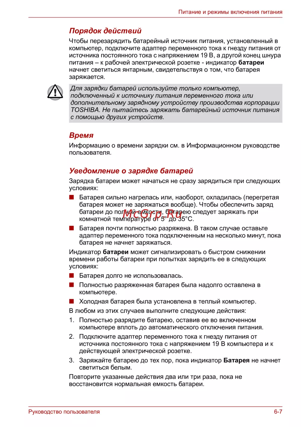 TOSHIBA. Не пытайтесь заряжать батарейный источник питания